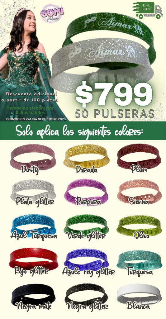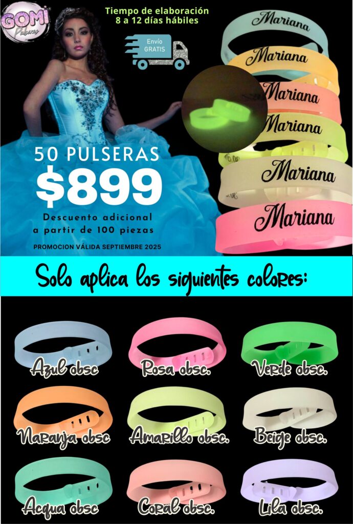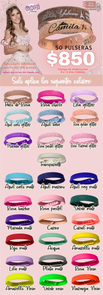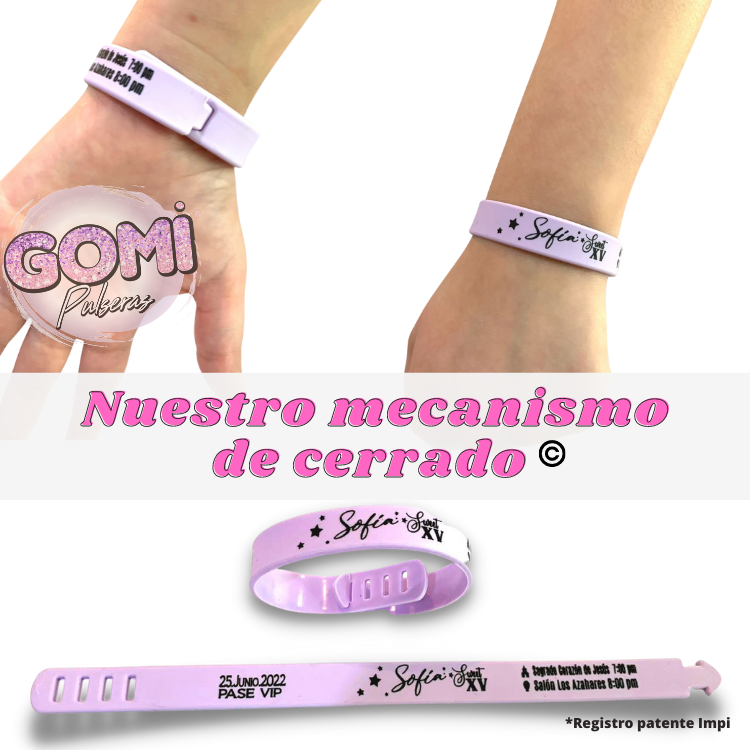 Nuestro modelo de pulsera esta patentado ante el Impi, nuestro material es 100% GOMA VIRGEN libre de plomo.